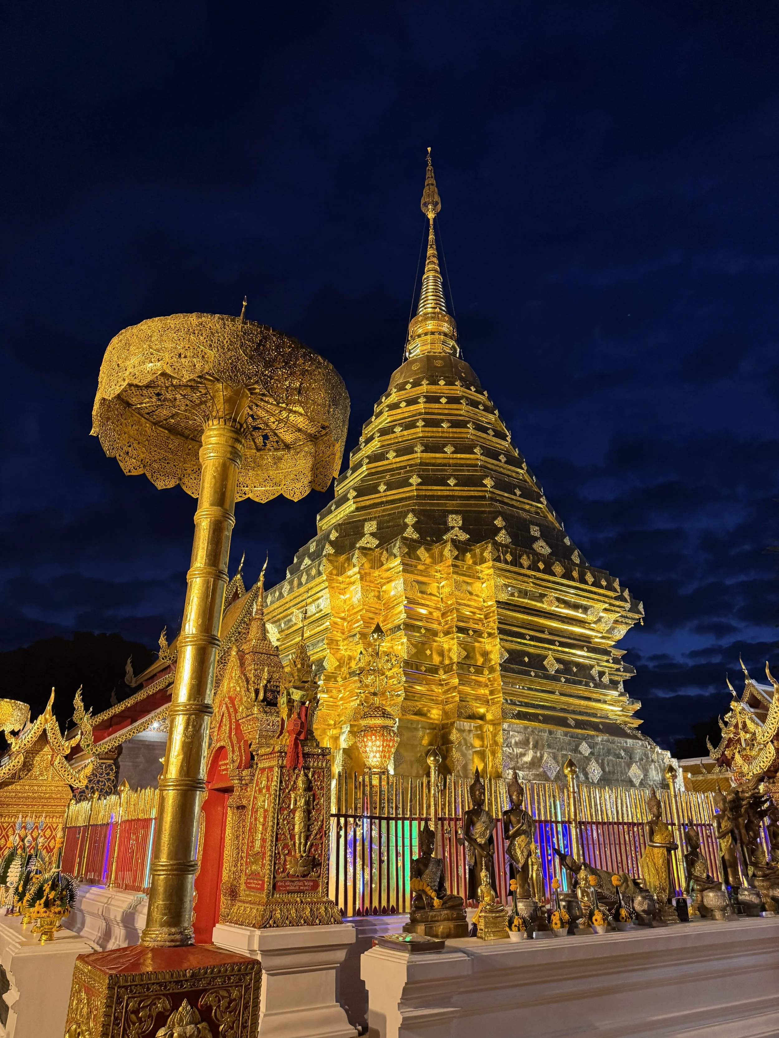 They say it takes 2–3 hours to see it all, but we spent nearly three and still didn’t cover everything. My favorite moment? Without even realizing it, we stumbled upon two famous temples, Wat Chai Si Phum and Wat Chedi Luang, glowing in the dark — magical!